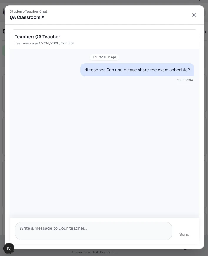 - Messages stay tied to the class so you can return to them later.