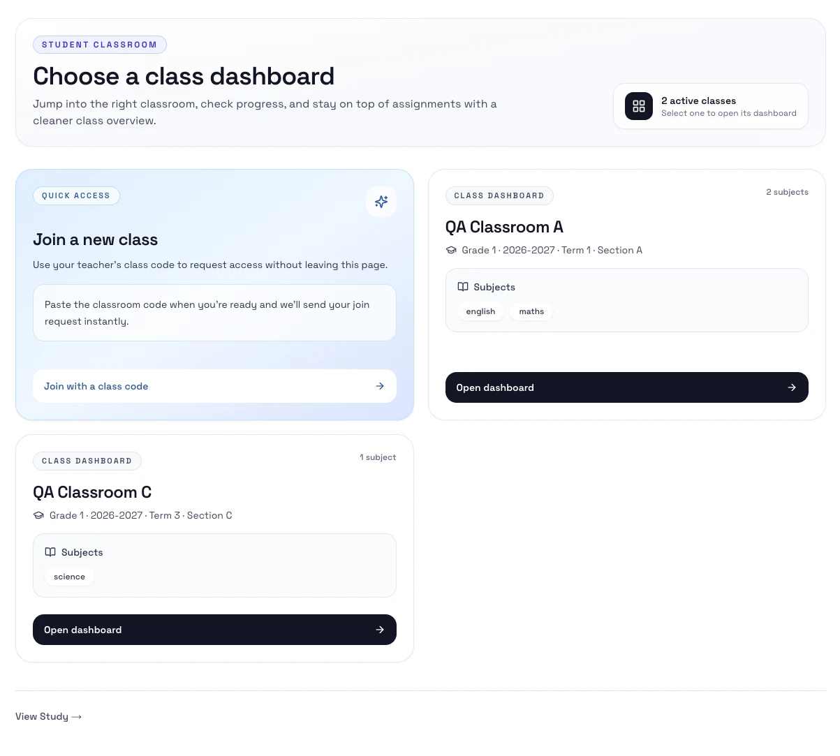 - Open the class dashboard from the list.